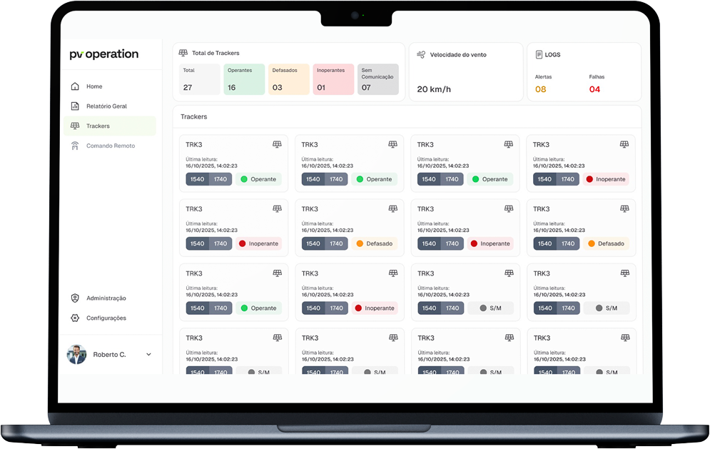 Além disso, o SCADA Local se conecta ao nosso PV SCADA SaaS, sincronizando informações e habilitando uma camada completa de performance, CMMS e monitoramento de portfólio.