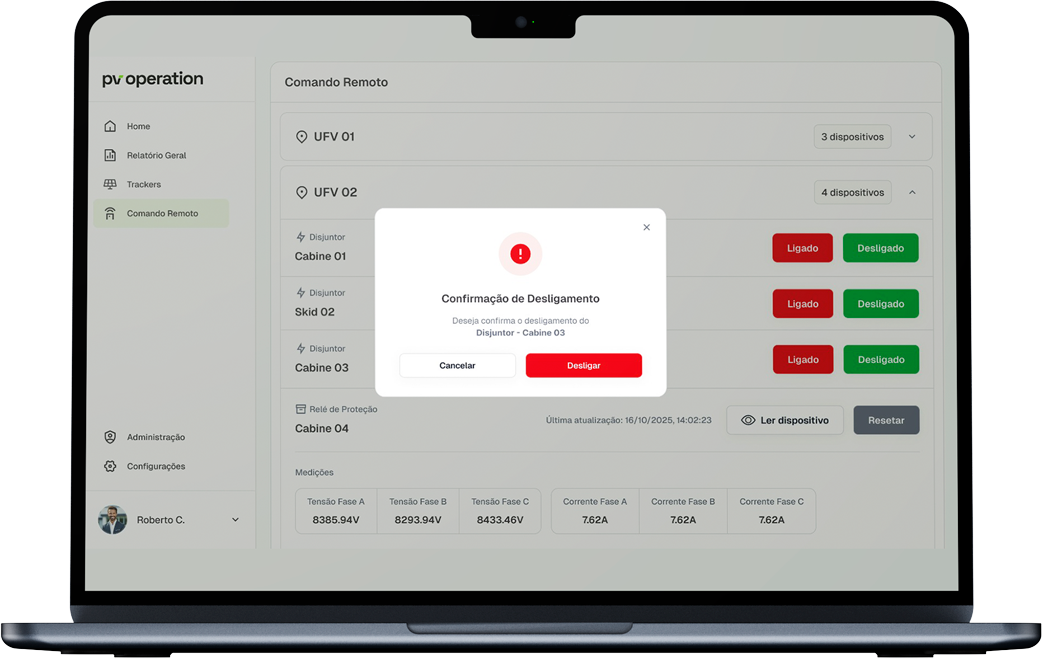 O SCADA Local PV Operation consolida supervisão em tempo real, controle elétrico e gestão individualizada por ativo em um único ambiente.